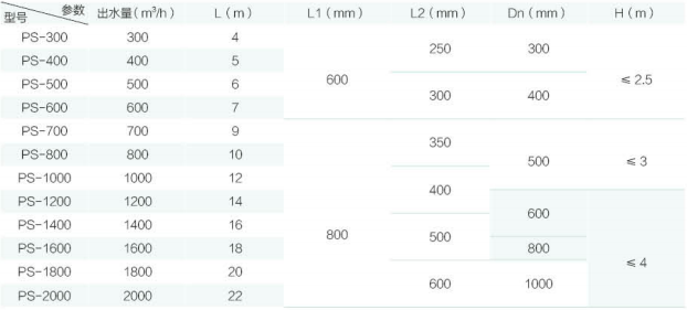PS 型技術參數(shù) PS type technical parameters